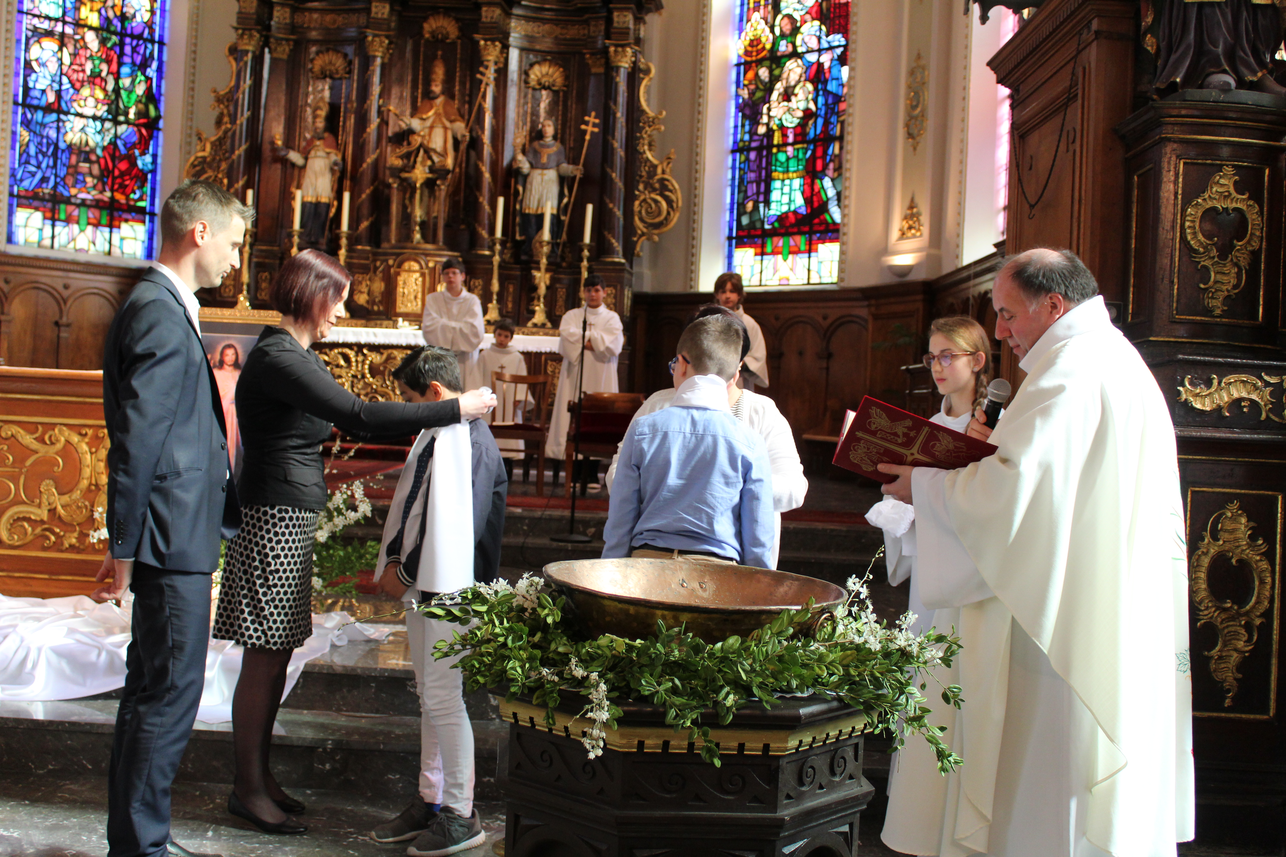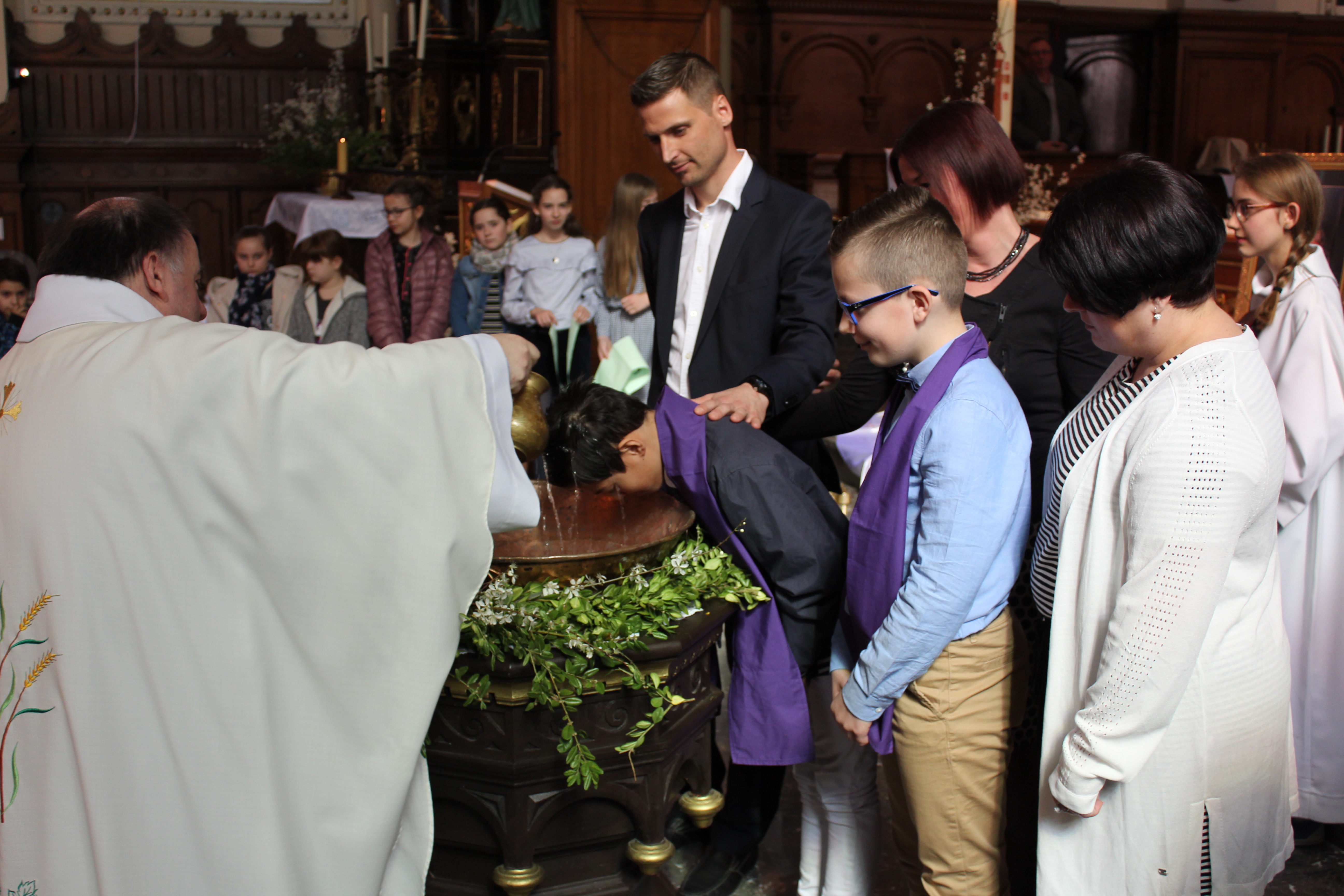 Le 8 avril 2018 Christopher et Kim,entourés des camarades et des proches, ont reçu le Sacrement du Baptême un mois avant leur Communion.